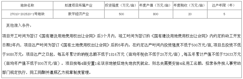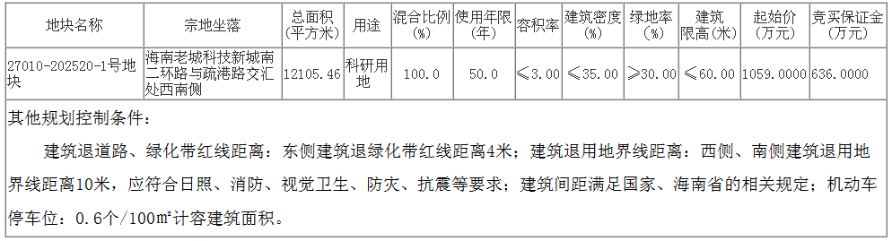 (一)按照《海南省产业用地控制指标》(琼自然资用〔2023〕12号)有关规定,该地块设定出让控制指标,具体如下: