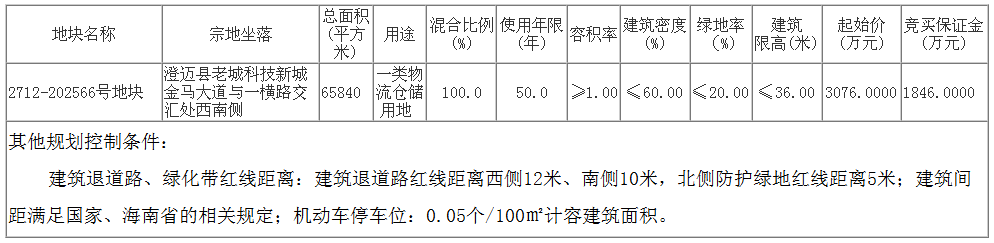 (一)按照《海南省产业用地控制指标》(琼自然资用〔2023〕12号)有关规定,该地块设定出让控制指标,具体如下: