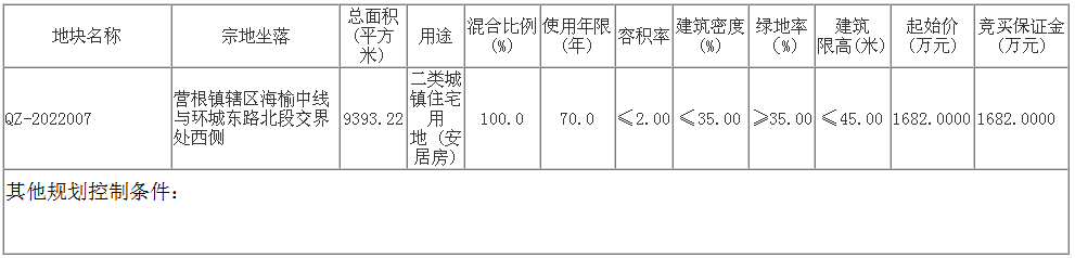 (一)按照《海南省产业用地控制指标》(琼自然资用〔2023〕12号)有关规定,该地块设定出让控制指标,具体如下: