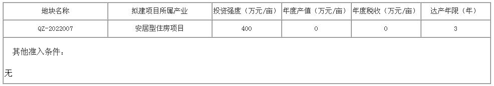 1.本次挂牌宗地按现状出让,拟建安居型住房项目。达产年限为签订《国有建设用地使用权出让合同》之日起3年内,项目达产时,本宗地在约定达产时间内的固定资产投资总额不低于5636万元人民币(不低于400万元/亩),年度产值和年度税收不作约定。该地块建设安居房的售价不得超过7609元/㎡(内含装修费1000元/㎡)。地块项目建设必须符合我县所在片区的总体要求和产业布局规划。
