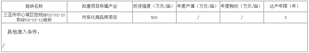 以上控制指标按规定列入《海南省产业项目发展和用地准入协议》,竞得人须与三亚市天涯区人民政府签订《海南省产业项目发展和用地准入协议》,并严格按照协议约定内容进行开发建设,否则将承担相关违约责任。