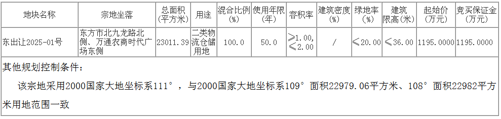 (一)按照《海南省产业用地控制指标》(琼自然资用〔2023〕12号)有关规定,该地块设定出让控制指标,具体如下: