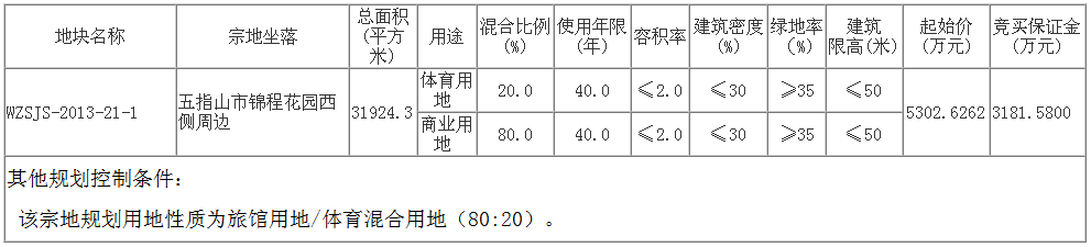 以上控制指标按规定列入《海南省产业项目发展和用地准入协议》,竞得人须与五指山旅游和文化发展局签订《海南省产业项目发展和用地准入协议》,并严格按照协议约定内容进行开发建设,否则将承担相关违约责任。