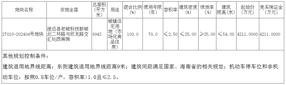 (一)按照《海南省产业用地控制指标》(琼自然资用〔2023〕12号)有关规定,该地块设定出让控制指标,具体如下:
